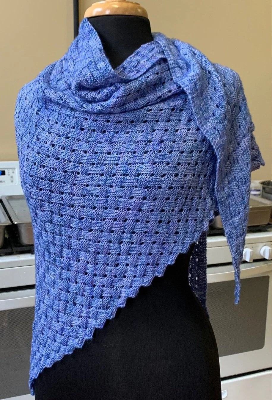 Jariq Shawl knitted with Periwinkle Sheep Sock and Shawl